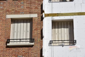 Ravalement avec isolation thermique par l’extérieur de près de 12 000 m² de façade, de 2 bâtiments HBM construits en 1932.
